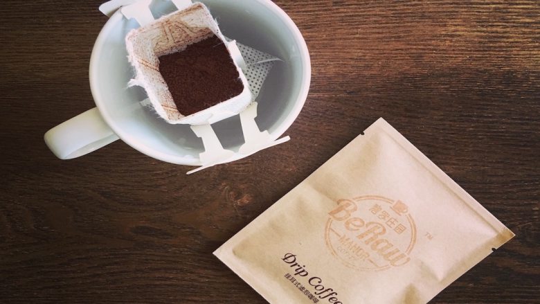 13. 选择一片挂耳咖啡加入180ML左右的纯净热水,只需三分钟就可以享受一杯大师级手冲啦,当然如果您是资深咖友也可以直接研磨新鲜烘焙的咖啡豆来手冲,具体教程请点击查看碧罗庄园的相关内容;