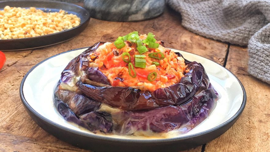 2. 烤箱上下火预热200度,烤25分钟。传统的傣味柠檬舂茄子,是用火炭慢慢把茄子烘烤熟的,火烘烤的香。