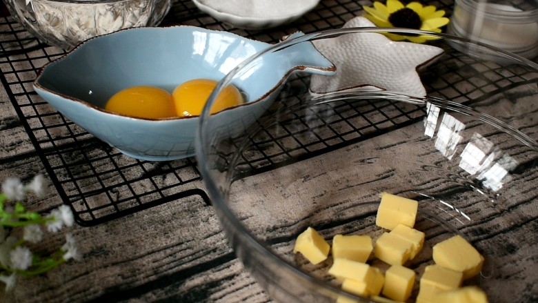 2. 将黄油室温融化,手指能轻易戳洞的程度