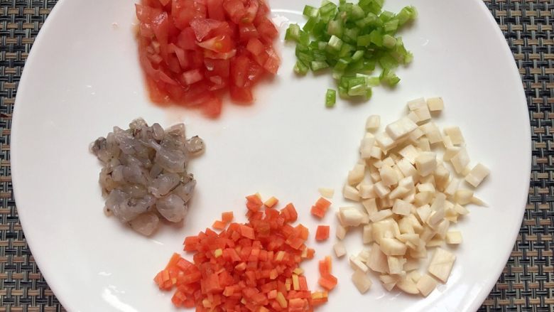 3. 将配菜全部切成小颗粒。