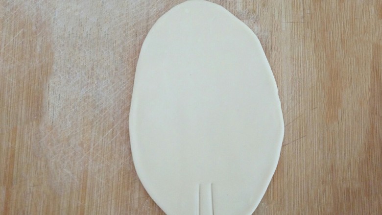 4. 2小时后,发酵好的面团,拉开呈蜂窝状,充分揉捏排气后,擀成长条