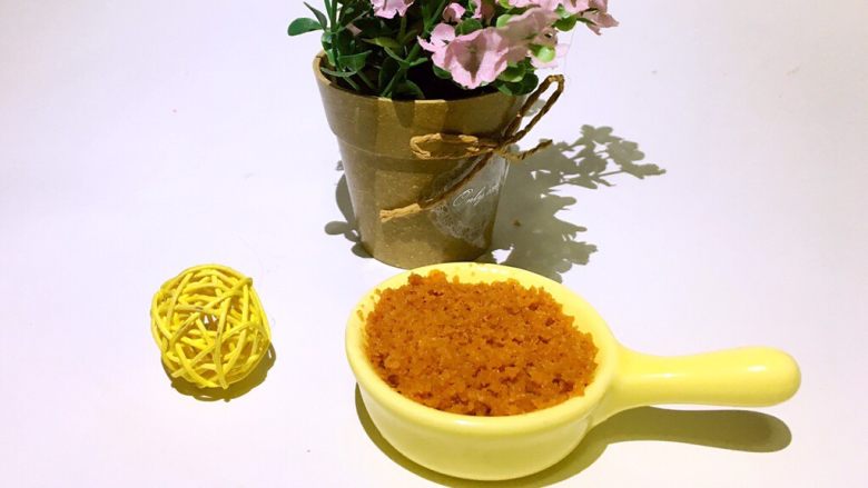 8. 8.小火起锅,不加油,倒入三文鱼末。