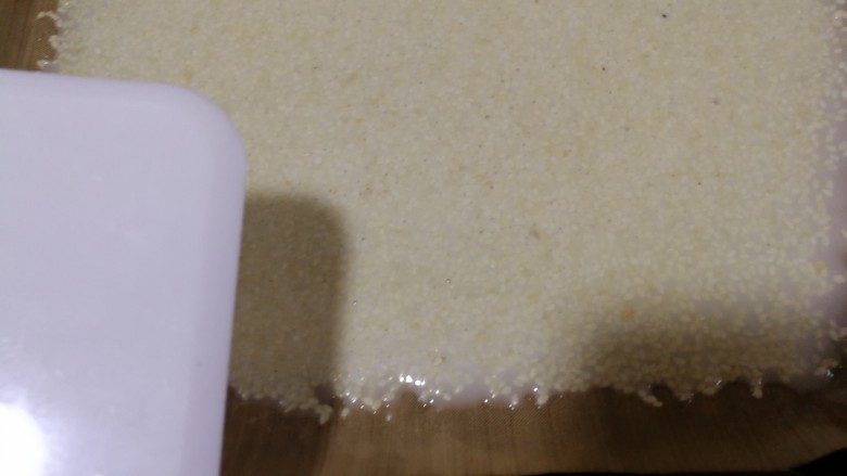 18. 油布翻过来放好。用刀切成条,再切成方块儿。