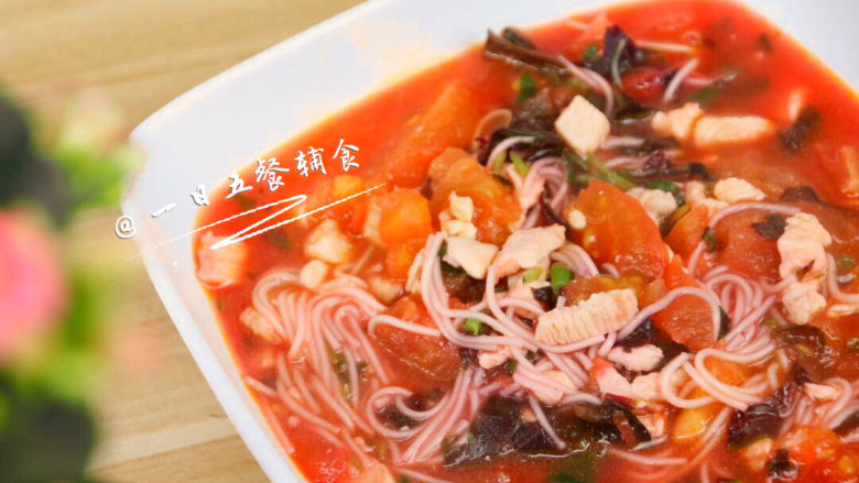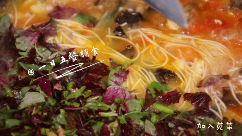 粉红鸡肉面 宝宝辅食,苋菜+西红柿+木耳