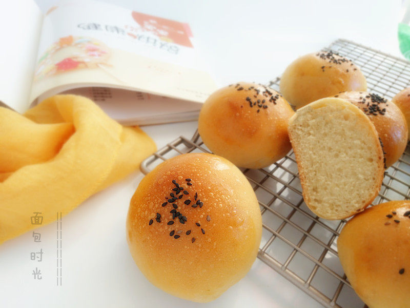 8. 二次发酵2倍大,涂上一层全蛋液,撒上黑芝麻