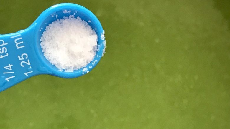 13. 入锅开小火煮,煮熟后放1/8茶匙盐调匀。