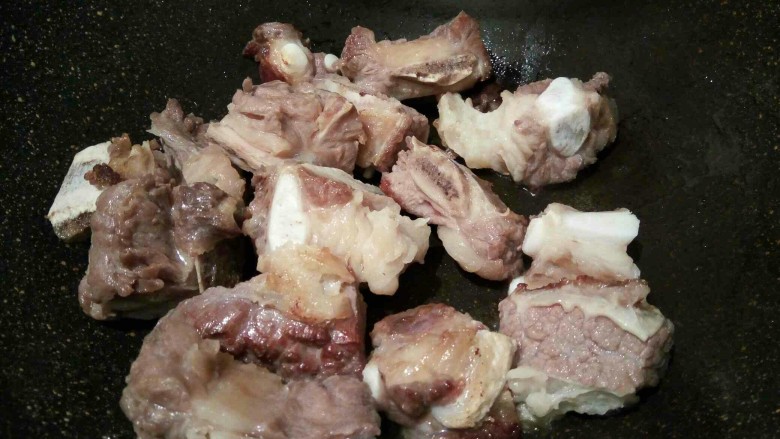 5. 锅里放少许油,把焯好水的牛排骨翻炒一下