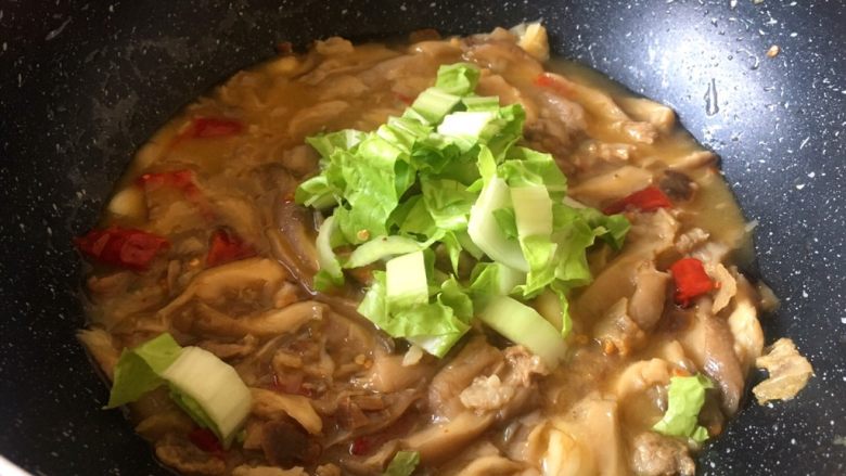 11. 最后2分钟放入剩余的白菜叶,因为叶子容易熟,最后放,以免煮久了