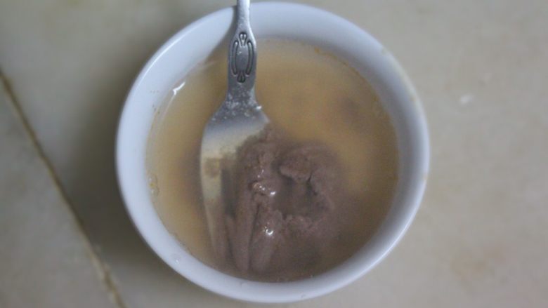 4. 取3.5块广合腐乳(3-4块都可以,我刚剩半块就用3.5块),加入糖和家乐鸡粉。