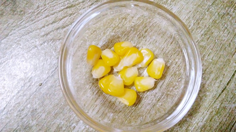 9. 玉米放凉,剥玉米粒,放入小碗里