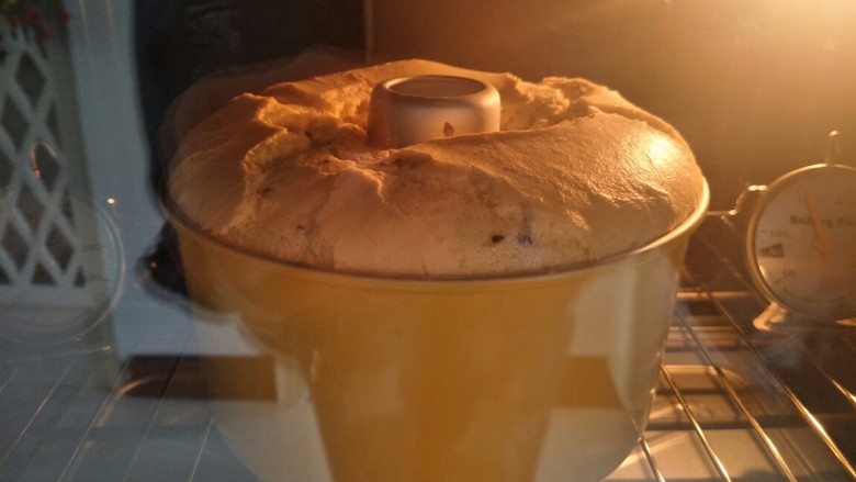 10. 放入预热好的烤箱180度30分钟(实际温度以自家烤箱为准) ,出炉后先震一下热气就要立马倒扣,晾凉后再脱模 。每家烤箱不一样要看自家烤箱自行调节