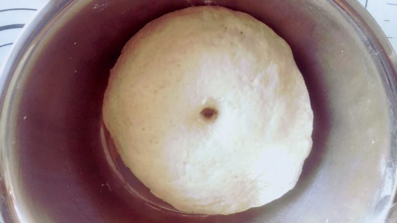10. 面团发酵好后,手指沾干面粉戳洞,不回缩不塌陷即可。