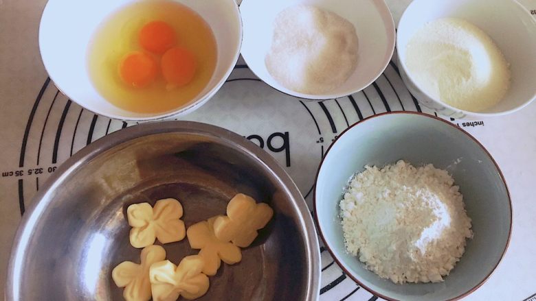 2. 等待面团发酵时,做奶黄馅。 所有材料分别称重。