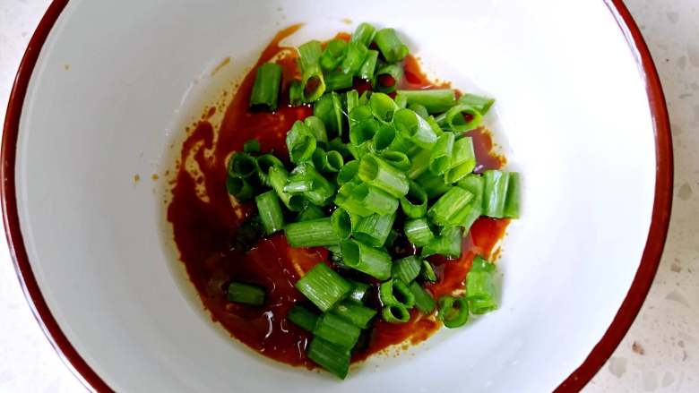 11. 碗里放适量熟油,蚝油和葱花,混合