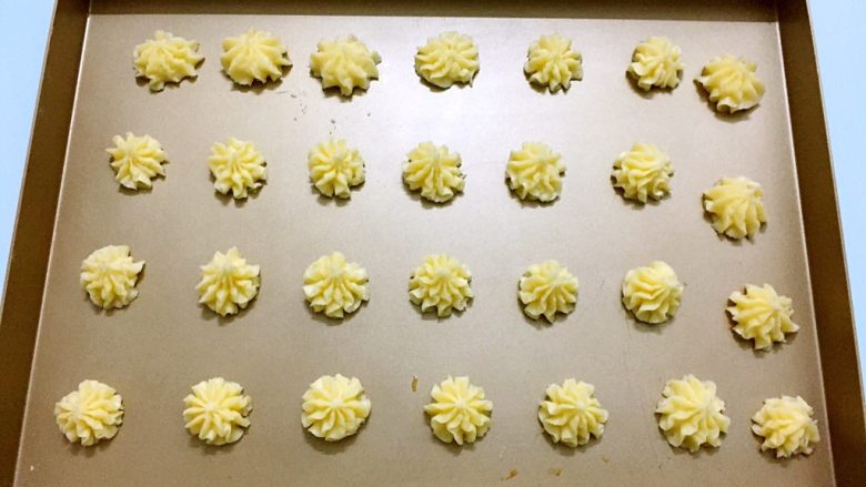 11. 在烤盘上挤出自己喜欢的形状,中间要间隔