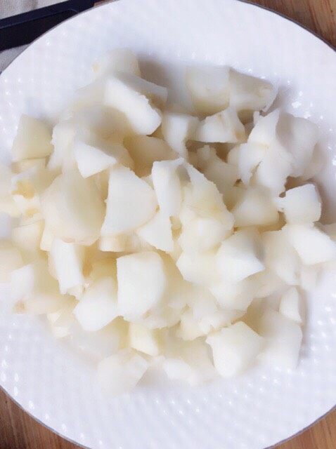 11. 勾芡淋入明油,起泡后加入馒头丁