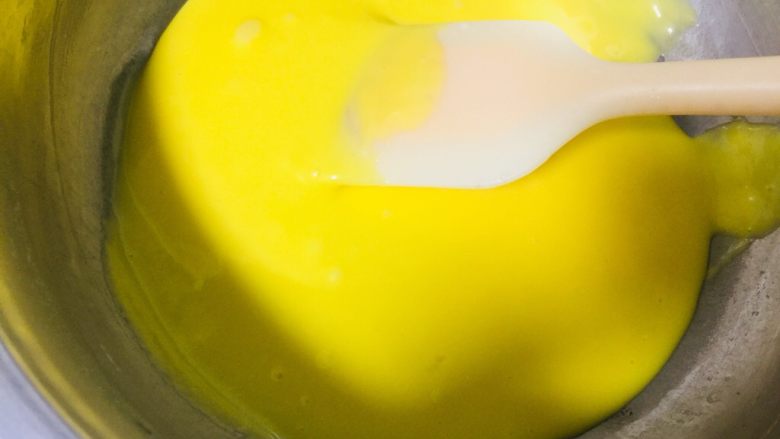 10. 取三分之一蛋白与蛋黄糊中 调匀