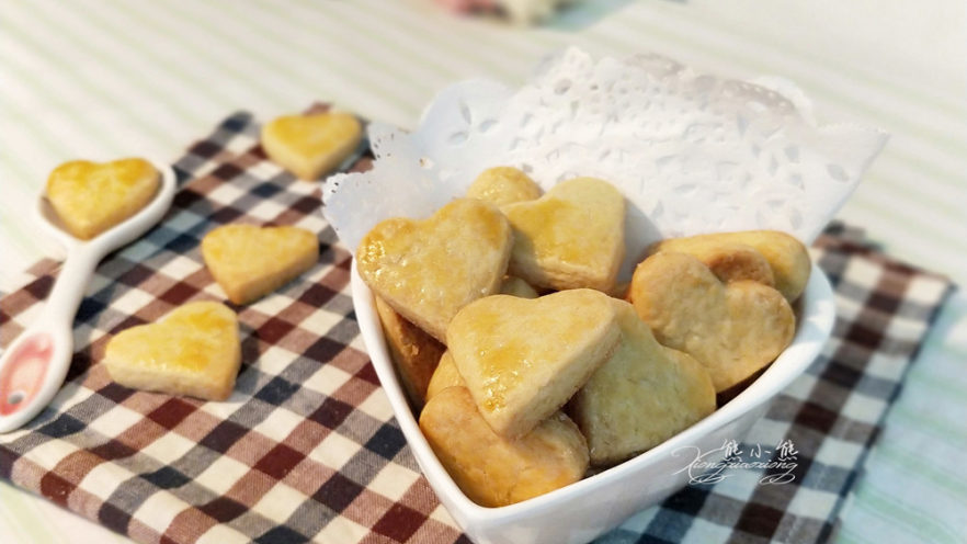 13. 心形饼干的表面刷上蛋液。