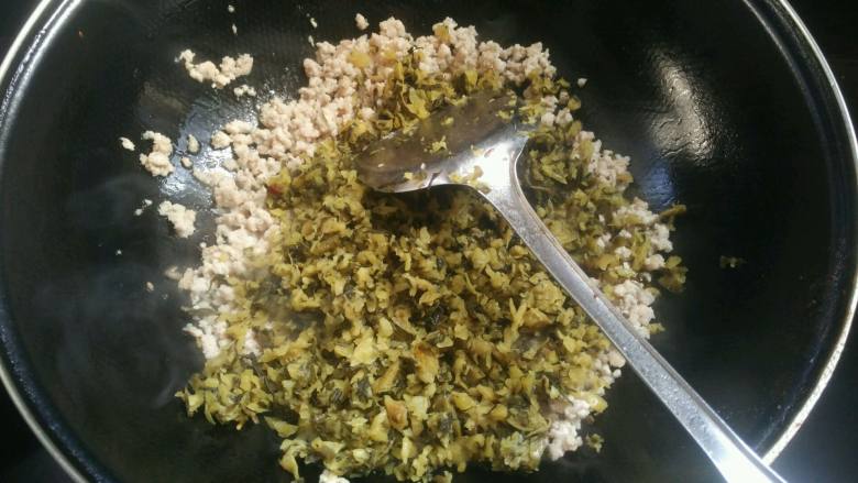 7. 加入腌菜一起翻炒