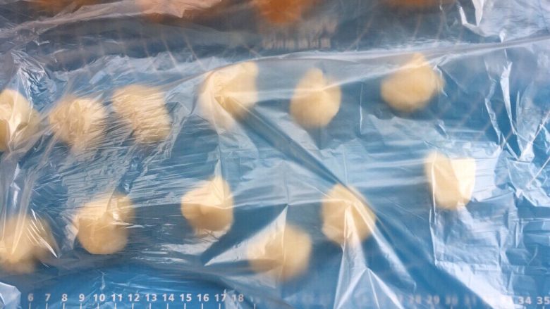 14. 趁着松弛面团的适量,我们将麻糍也分成12份,每份15克左右。