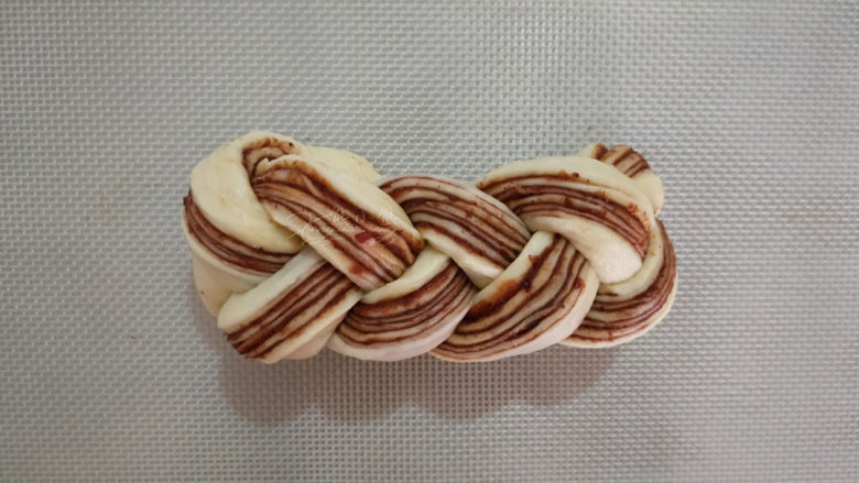 13. 两头都窝到辫子的底部。窝进去的部分两头要对上,别留空隙,不然发酵时中间就凹进去了。