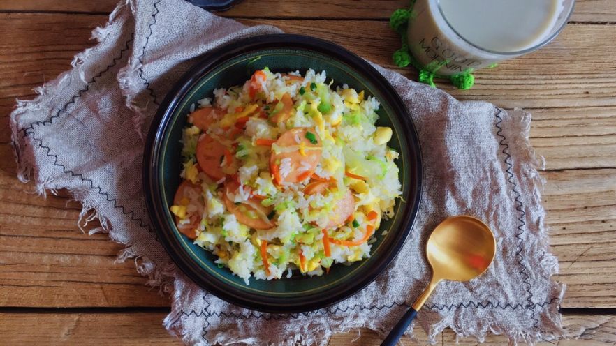 9. 最后加入鸡蛋,葱花炒匀即可。