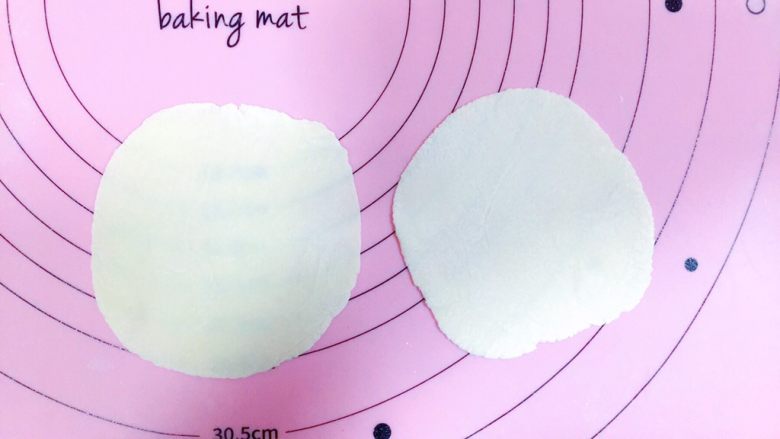 28. 我们来玩佳儿的阳光盒子吧!做俩个差不多大小的面皮。可以用圆形那个模具扣。我是擀的,不用特别圆。因为面可以舒展。