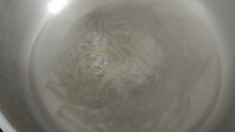8. 锅中放入适量植物油,放入肉丝炒至变色