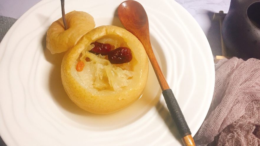 12. 希望这款雪梨炖雪耳枣的料理能帮助最近频繁咳嗽喉咙痛的宝贝!