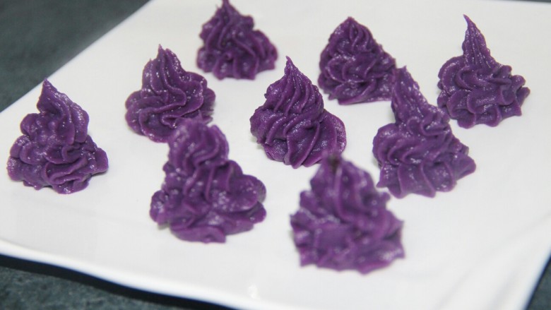 - 紫薯泥一定要放料理杯里面搅打一下,不然会有颗粒,这样装进裱花袋里面就可能堵住,挤不出花型
