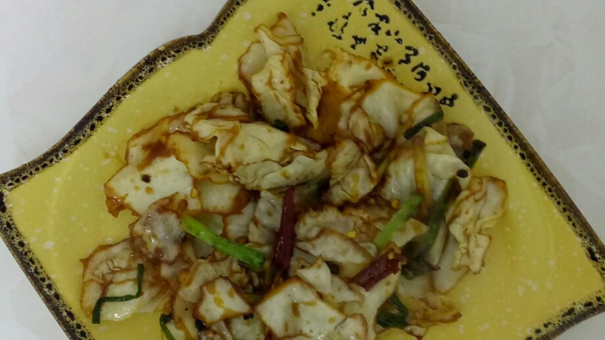 3. 锅中放入适量油,小火炒香花椒,改大火放入圆白菜快速翻炒,炒至断生时加入辣椒段、蒜苗段,加入适量耗油、生抽快速翻炒。
