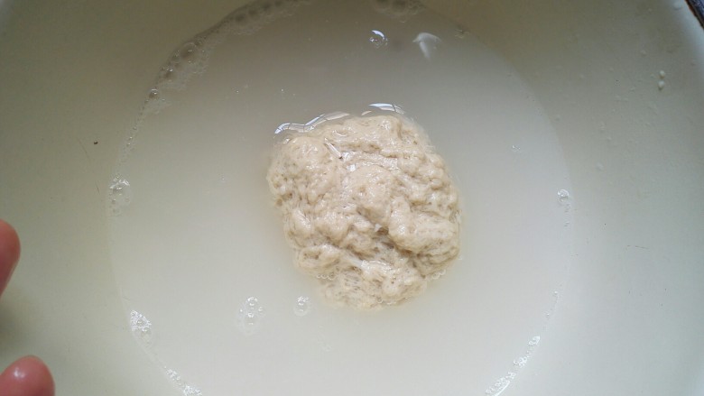 7. 用双手不断的撮洗面团,洗到水发白就把水倒入另外一个盆中。