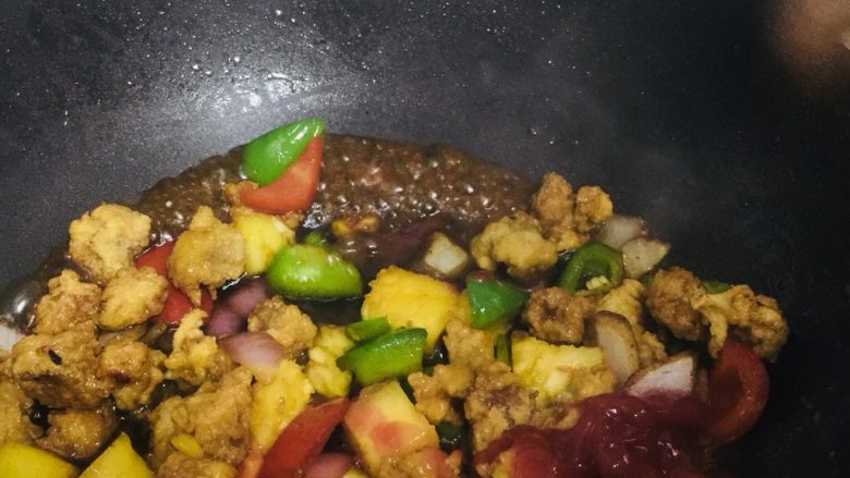 清爽酸甜的咕噜肉,外酥里嫩,脆嫩香甜的菠萝加上酸甜口味的汤汁,真的超下饭,周末或者节日全家聚会做下这个菜,大人小孩都喜欢。