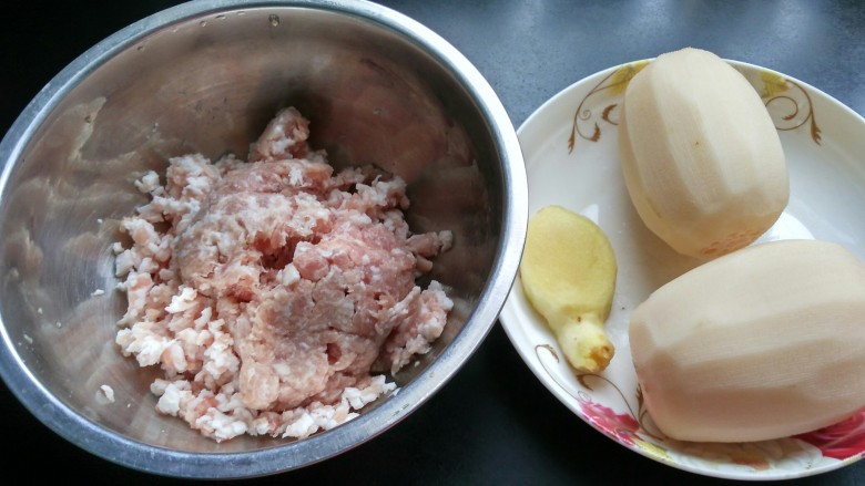 4. 肉末里加切成丁的生姜,葱,胡椒粉,味极鲜酱油,盐,料酒。