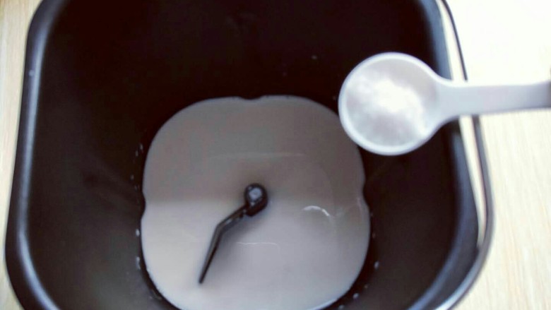 7. 再次启动面包机,自动揉面20 分钟。 20分钟后面团已经有了不容易破的手套膜,这时可以进行发酵。(室温发酵也可以,但是要保持面团的湿度)发酵时间90分钟左右。