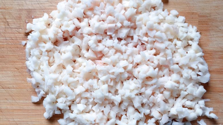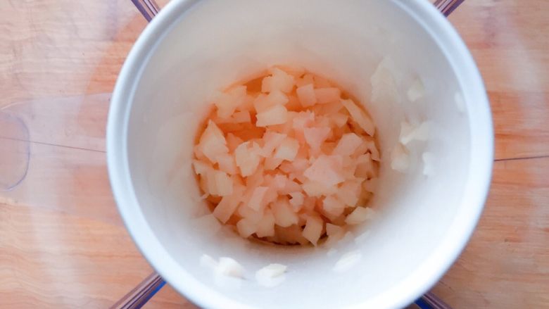 2. 先将莲藕去皮洗净,切成小丁。