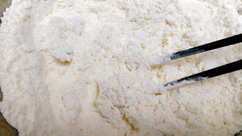 2. 取中筋面粉,把酵母水边倒边搅拌均匀,再加适量清水,拌成絮状