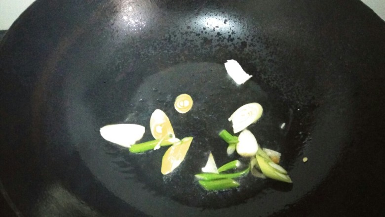 9. 炒锅放入适量植物油,油七成热,放入葱片炒香