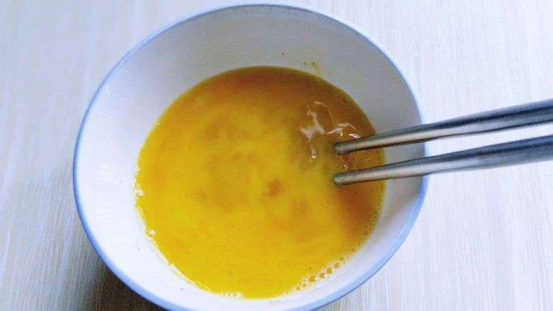 7. 起油锅,油温7成时倒入蛋液,小火煎蛋饼。