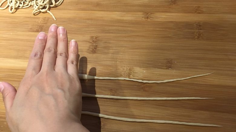 7. 莜面鱼鱼的做法,就两个小面团放在掌心