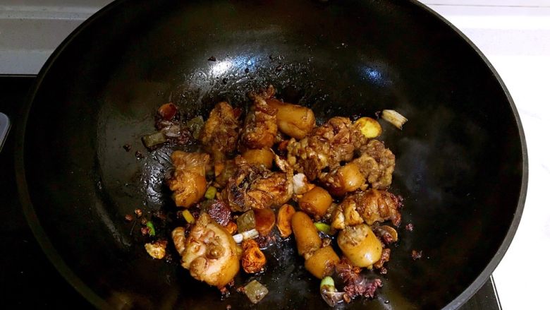 15. 盖上锅盖,大火烧开后小火烧30分钟,猪尾熟透后大火收汁