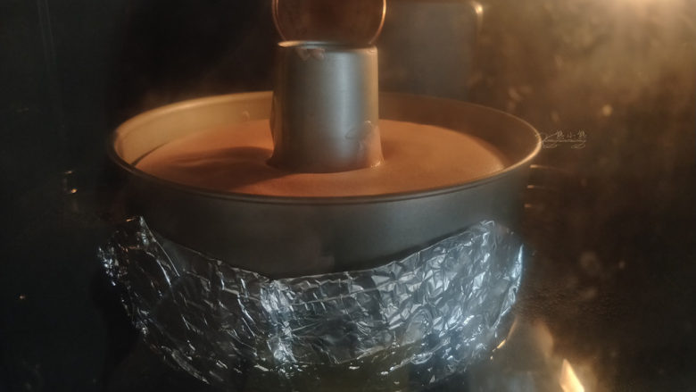 1. 准备模具,中空戚风模是活底的,要包上锡纸,防止水浴时进水。