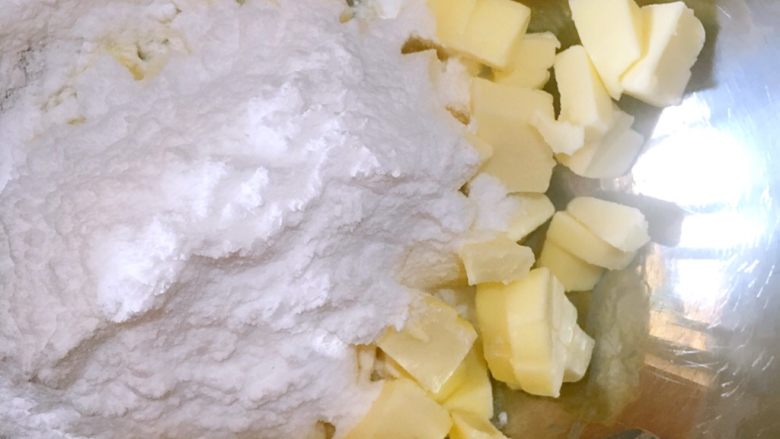 1. 提前把黄油切小块充分软化,用手指轻轻一按就一个小洞的状态。(记得是软化!!!不是隔水融化成液体!)
