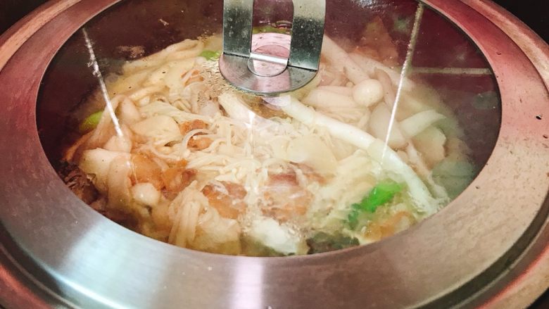 8. 翻炒出有汤汁时,加盖焖两三分钟