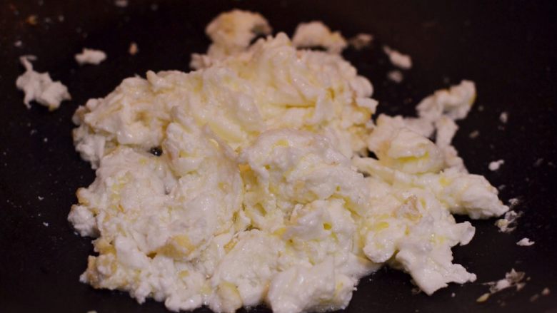 10. 快凝固时,倒入一半生姜水,炒至凝固。
