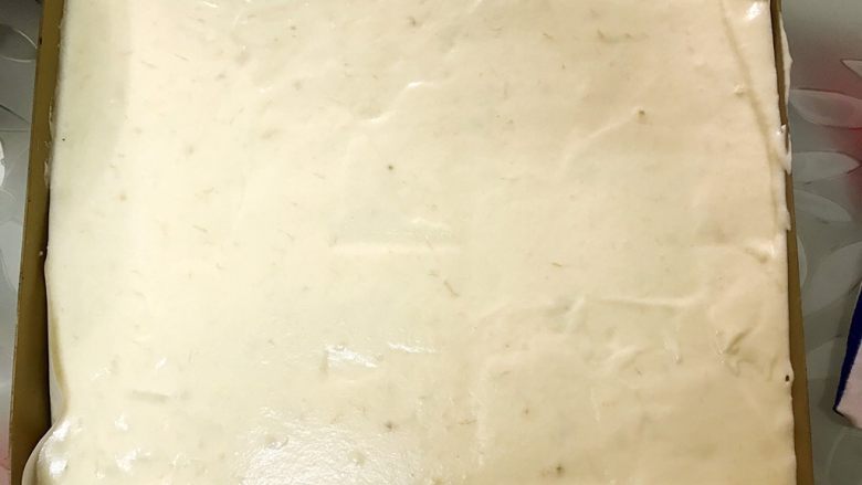 15. 放入铺有油纸的烤盘里,用刮板微微抹平