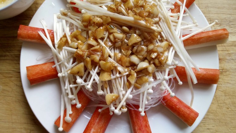 蟹棒味道鲜美,很多人喜欢吃,通常是吃火锅的时候煮着吃,第一次尝试与粉丝一起蒸着吃,味道还挺搭的。