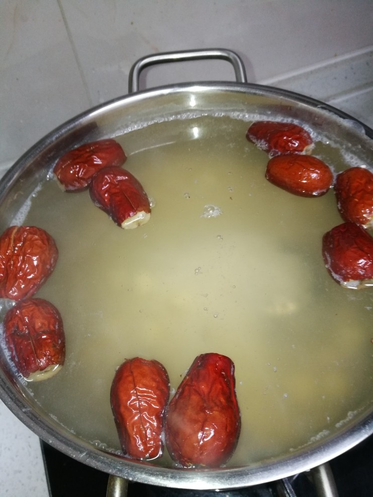 10. 加入芡实、莲子、薏仁米、茯苓。继续用中小煮20分钟。
