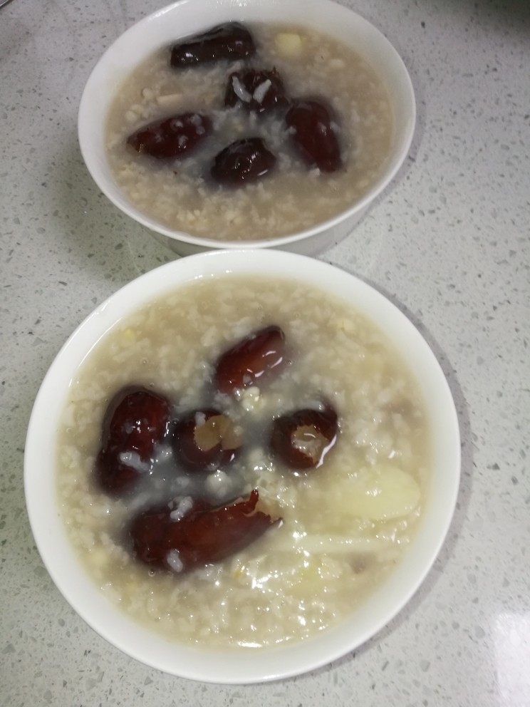 粥品:元气#八宝粥#是97岁高龄國医大师路之正推荐的一道养生粥,此粥原创是出自清代药学家赵学敏《串雅外编》。是一道最正宗的八宝粥,八宝粥在过去被称为佛粥,民间傅说八宝粥来自天竺。中國南宋文人周密所撰的《武林旧事》中说:"用胡桃、松子、乳覃、柿、粟之类作粥,谓之八宝粥。"八宝粥具有健脾养胃,益肾固精,益气安神,养血养颜等功效。为此,中國四千年前粥主要为食用,两千五百年前引粥入药。粥是历代中國人养食和养生的最佳"代言”,在《粥谱》中,被列为上品,在《神农本草经》中被称上品的食材,即就是养护生命的美食美肴。中國古典巨著《红楼梦》是一部伟大的文学名著,也是一部科学的养生宝典。百年望族的贾府主子们,可以每日吃山珍海味,但是他们最喜欢的、认为最健康食物却是粥。为什么最金贵的人以粥养生呢?答案就在明代李时珍的《本草纲目》中:"粥极柔腻,与肠胃相得,最为饮食之炒诀也。“现代人越来越重视养生,养生之法每喜新奇,"养生大师"粉墨登场。却不知大道至简,真正养生之法就是平实之中,简单到一粥一饭。在中医看来,脾胃乃后天之本,气血生化之源,中医有“内伤脾胃,百病由生"说法,粥性质温和,易于消化,营养丰富,故而最能养脾胃,脾胃健旺则"百病除”,就能达到养生的目的,强壮身体,延年益寿。 最后,我希望渴望养生的友友们:能结合我(30/11~2017)的#食话##食行人生##元气早餐#一并阅读,定能得一点点收益,无比感谢。