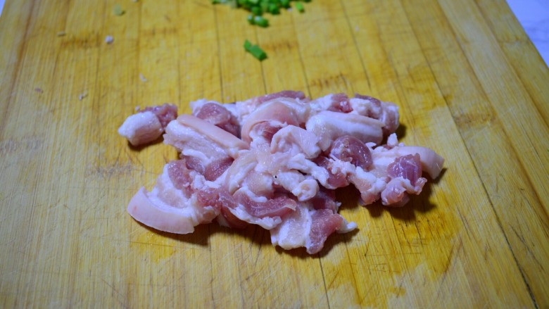 5. 锅中油大火烧成七成热,加入八角,加肉炒香,再加葱姜蒜各5克,炒至肉断生。